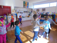 E passamos à execução dos acessórios, a dançar com a música "As abelhas" de Vinicius de Moraes e a fazer todos os preparativos para desfilarmos com as crianças das outras escolas.